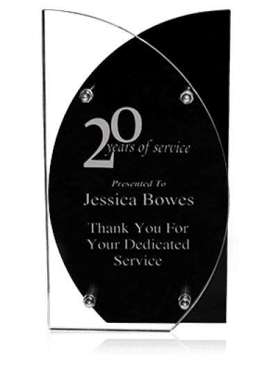 浮動亞克力獎採用分層黑色和透明亞克力片。額外的雕刻、標識和設置費用適用。