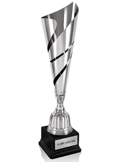 Famed Metal Trophy 是向您的頂級表演者表達您的欣賞的理想方式!這款獎杯採用帶鏤空的閃亮銀杯設計,位於方形黑色底座上。額外的雕刻、標識和設置費用適用。