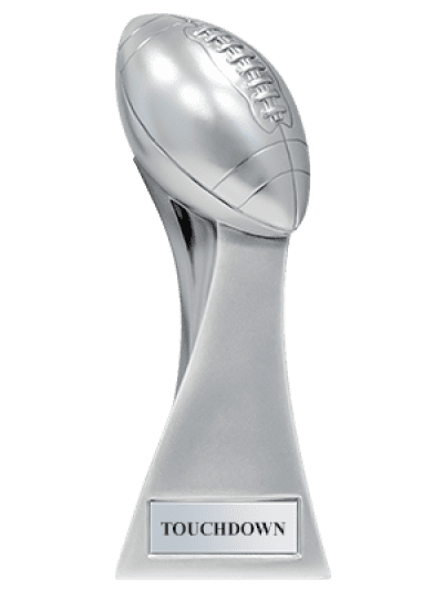 Crown 獨有的達陣足球雕塑採用全模壓銀色足球設計和高光澤飾面。這是適合所有年齡段的足球運動員、教練和參與者的完美獎項。額外的雕刻、標識和設置費用適用。