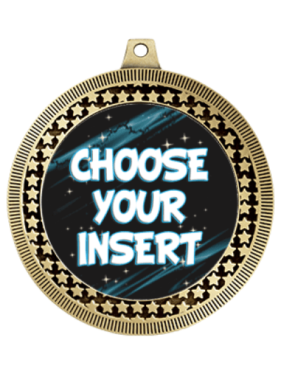 Crown Trophy Medals Vega Insert Medal 採用精細的星形邊框設計並固定 2" 插入物。額外的雕刻、徽標和設置費用適用。